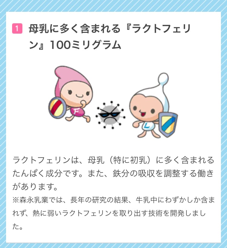 1.母乳に多く含まれる生体防御成分『ラクトフェリン』100ミリグラム